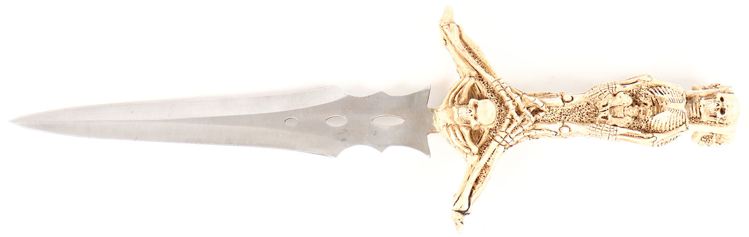 Modern knife, 9'' blade, intricate skeleton handle. Grade: Excellent - Value: 10 to 50