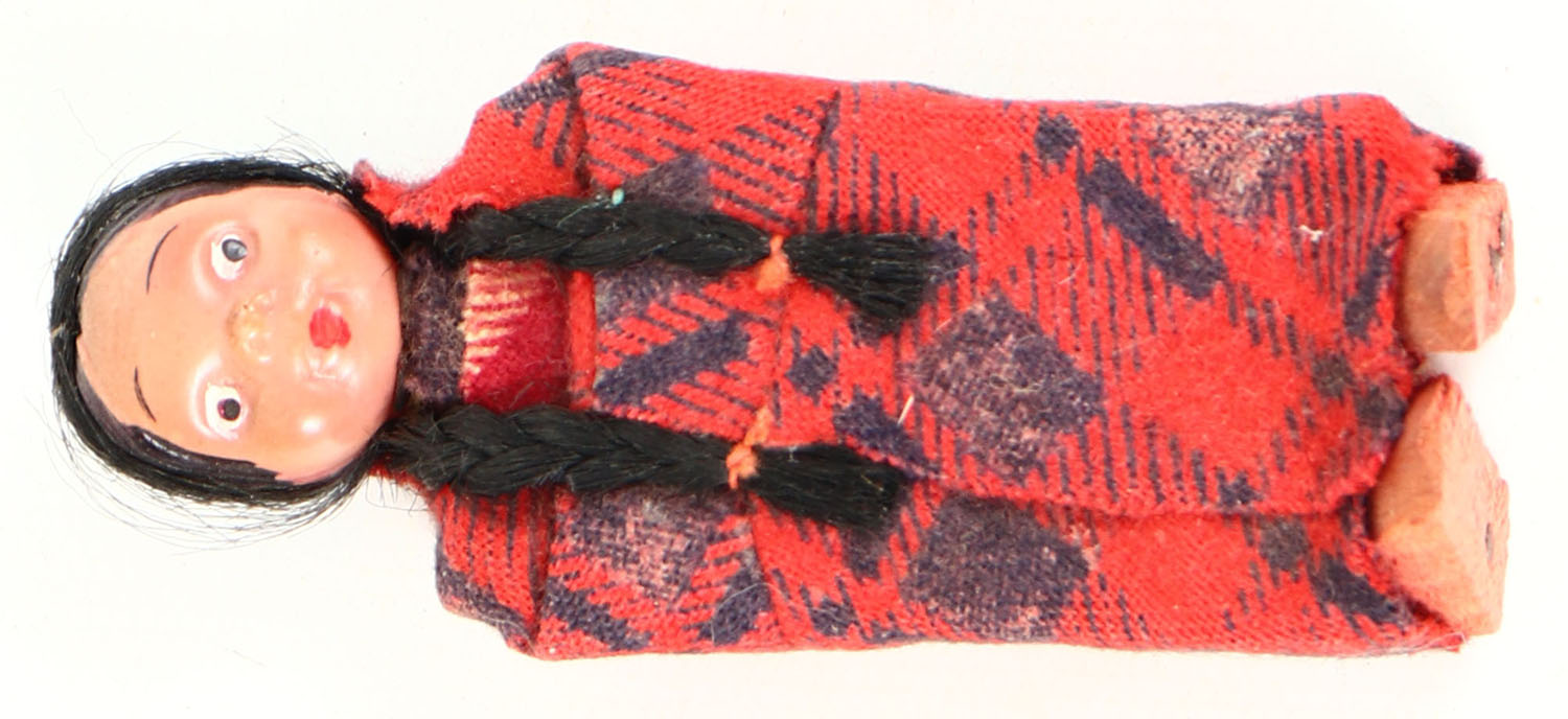 Early skookum dol, all wood with wool. Grade: Excellent - Value: 20 to 60