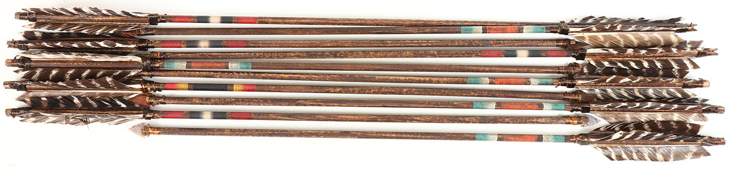 Large lot of handmade Native American arrows, flint tip with bird feathers and well made! Grade: Excellent - Value: 20 to 200