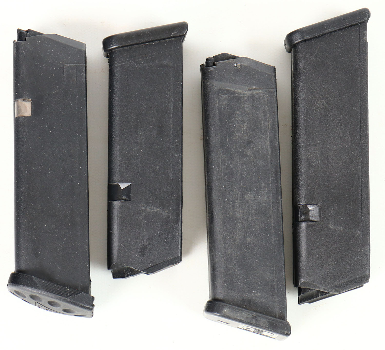 Lot of 4 GLock pistol mags, 9mm and .40 cal. mags. Grade: Excellent - Value: 16 to 60