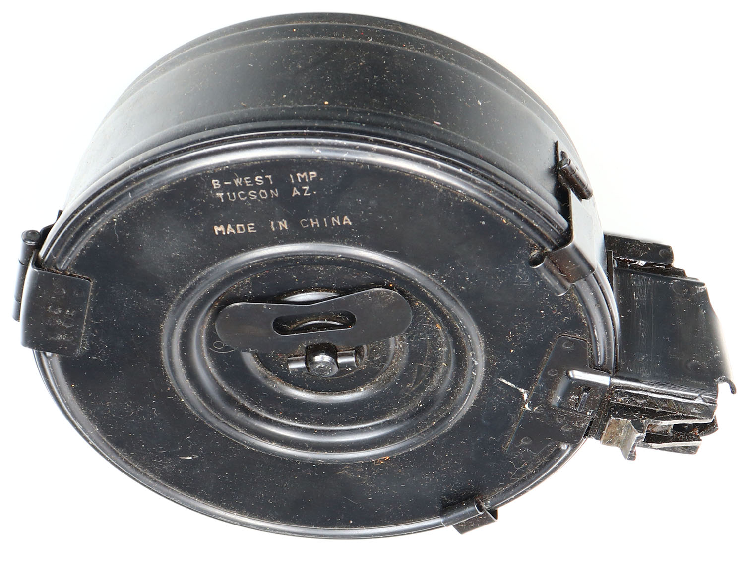 Large drum mag., B-West IMP, #9396, no caliber markings. Grade: Very Good + - Value: 40 to 150