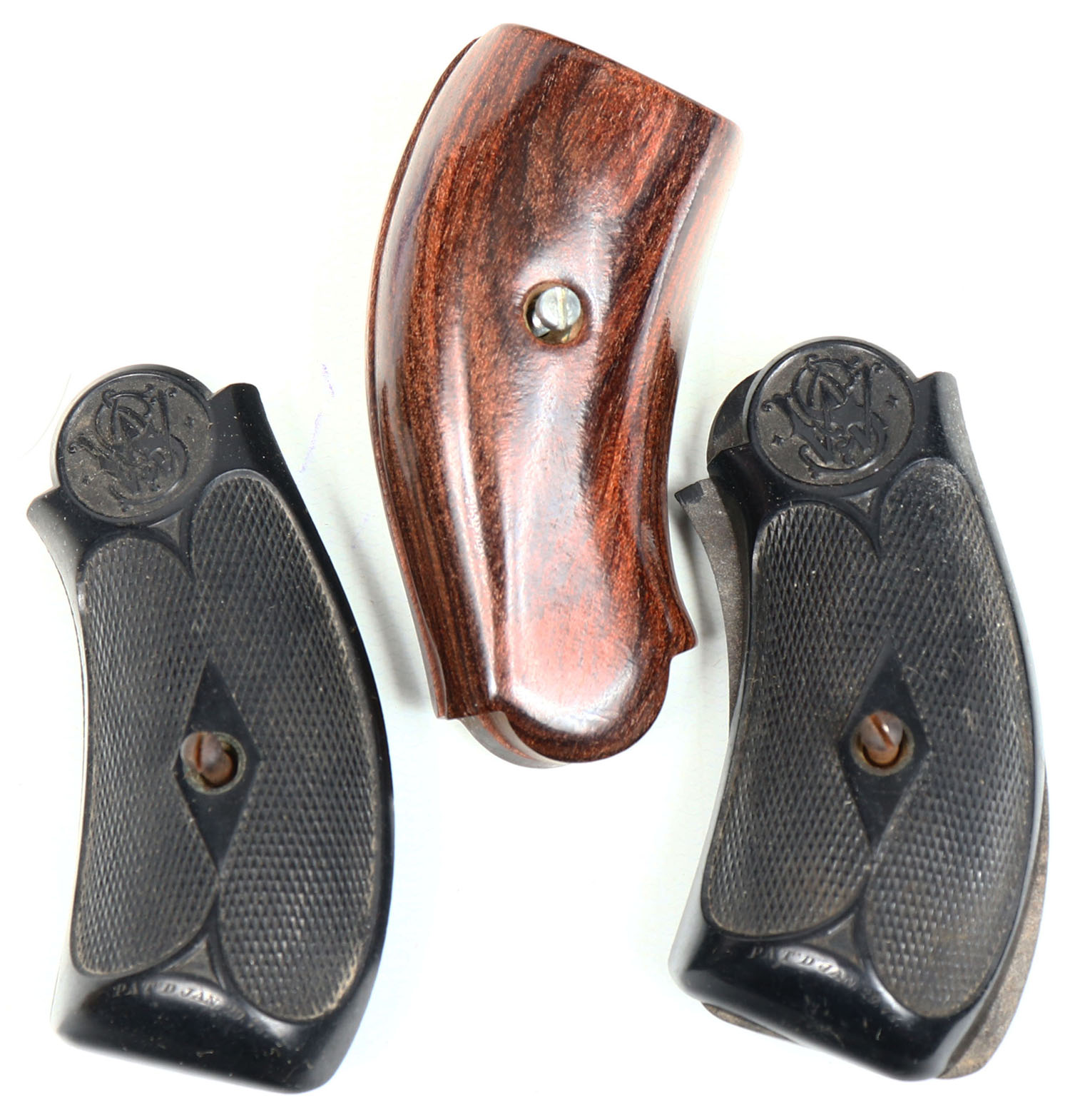 Lot of 3 Pistol grips, 2 S&W and 1 unmarked wood grip, has screw. Grade: Excellent - Value: 20 to 80