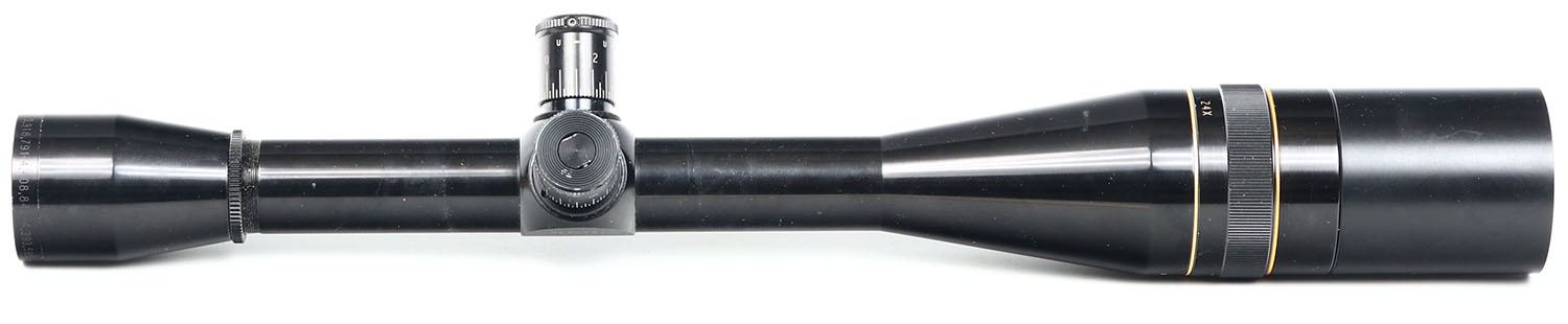 Leupold 24x rifle scope, has scope cover, clear view with fine hair reticle with dot. Grade: Excellent - Value: 100 to 400