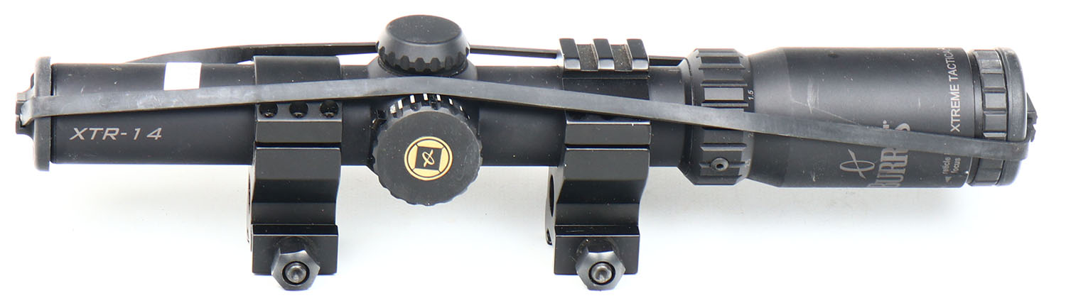 Burris Xtreme Tactical rifle scope, 1x-4x 24mm, XTR-14, has scope cover, clear view. Grade: Excellent - Value: 100 to 300