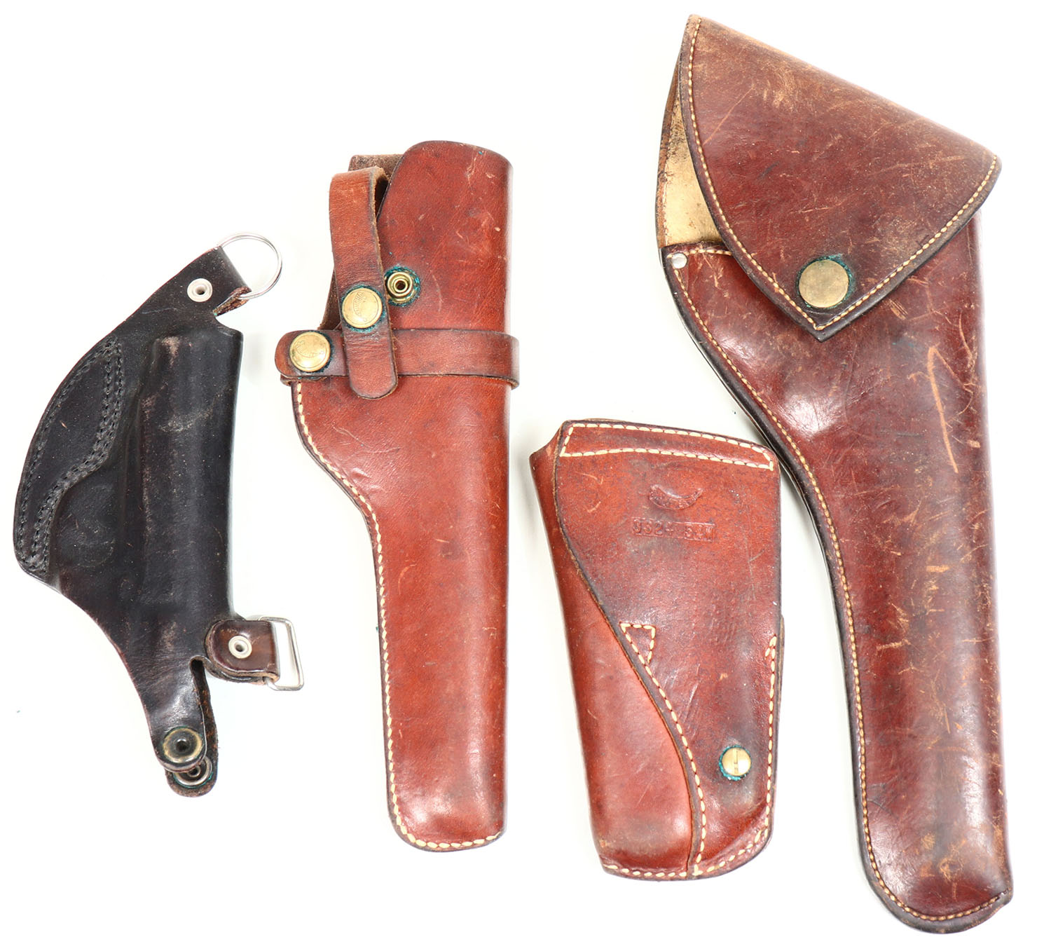Lot of 4 antique leather pistol holsters. Grade: Very Good ++ - Value: 20 to 60