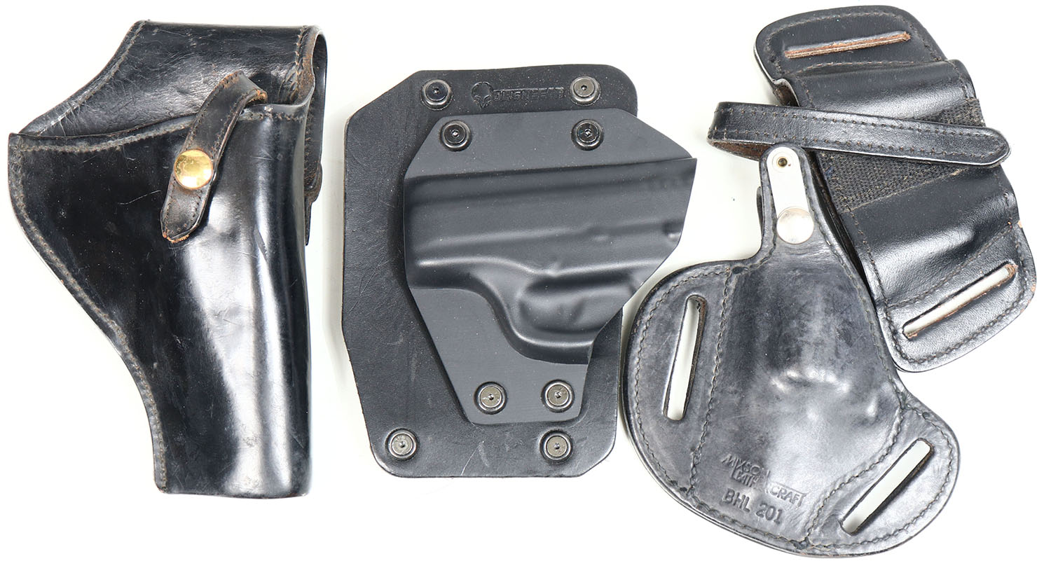 Lot of 4 antique leather pistol holsters. Grade: Very Good ++ - Value: 4 to 60