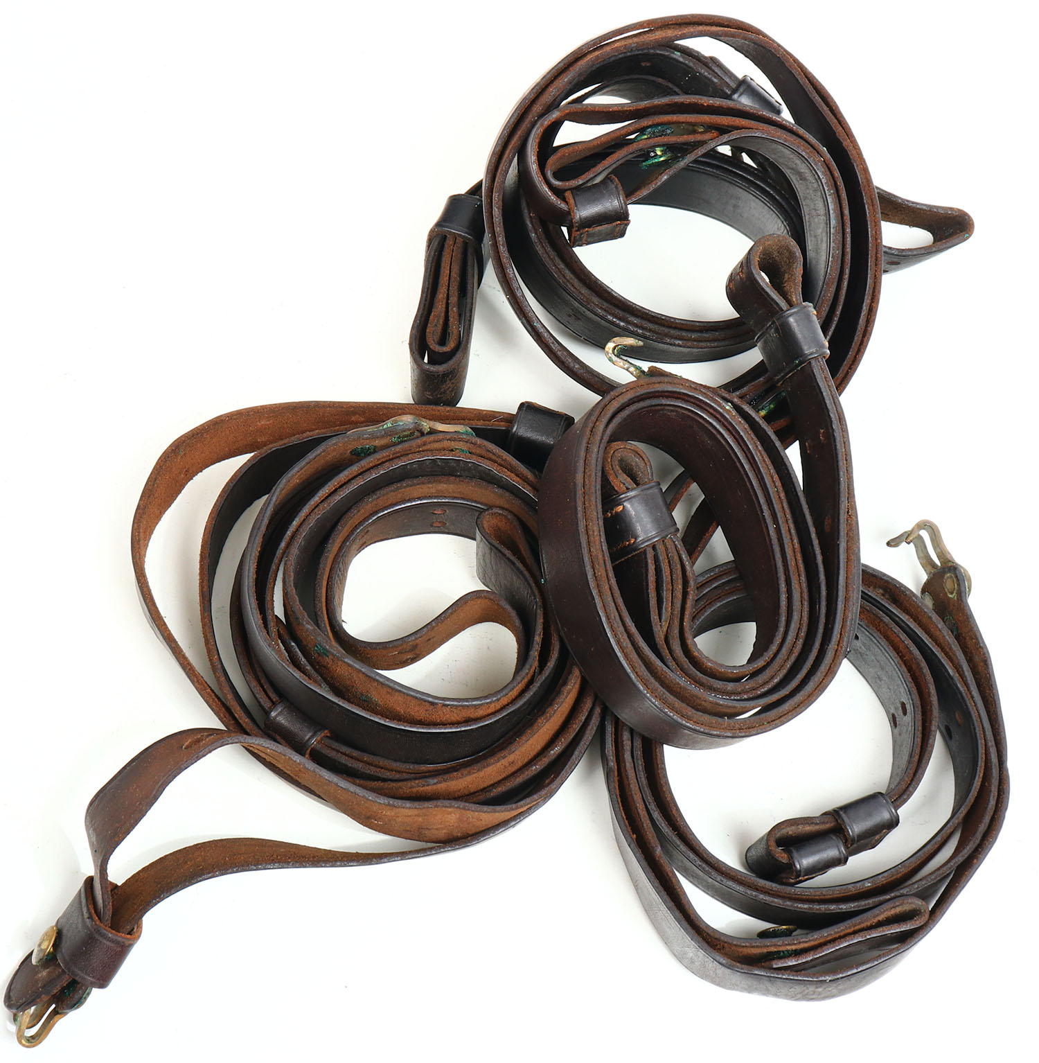 Large lot of antique leather rifle straps. Grade: Very Good - Value: 10 to 50