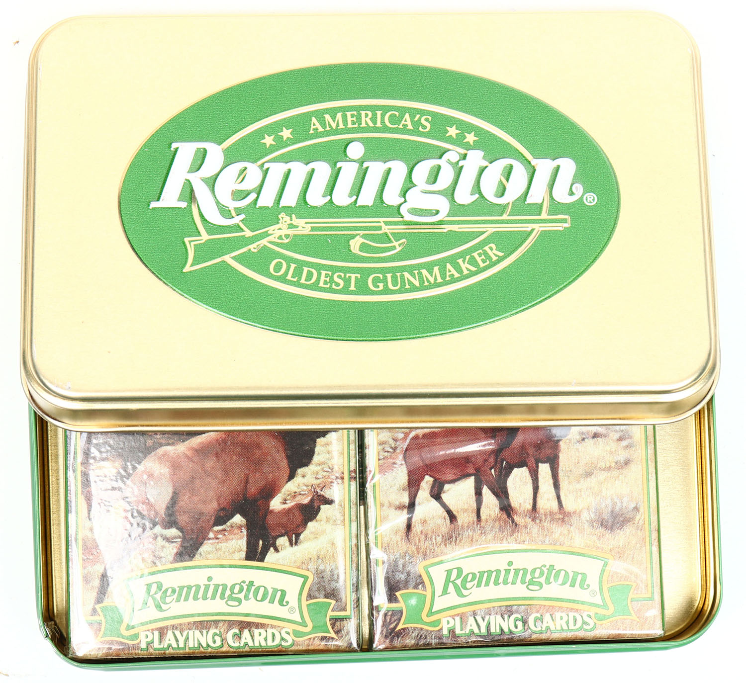 Remington playing cards in metal tin. Grade: Excellent - Value: 4 to 40