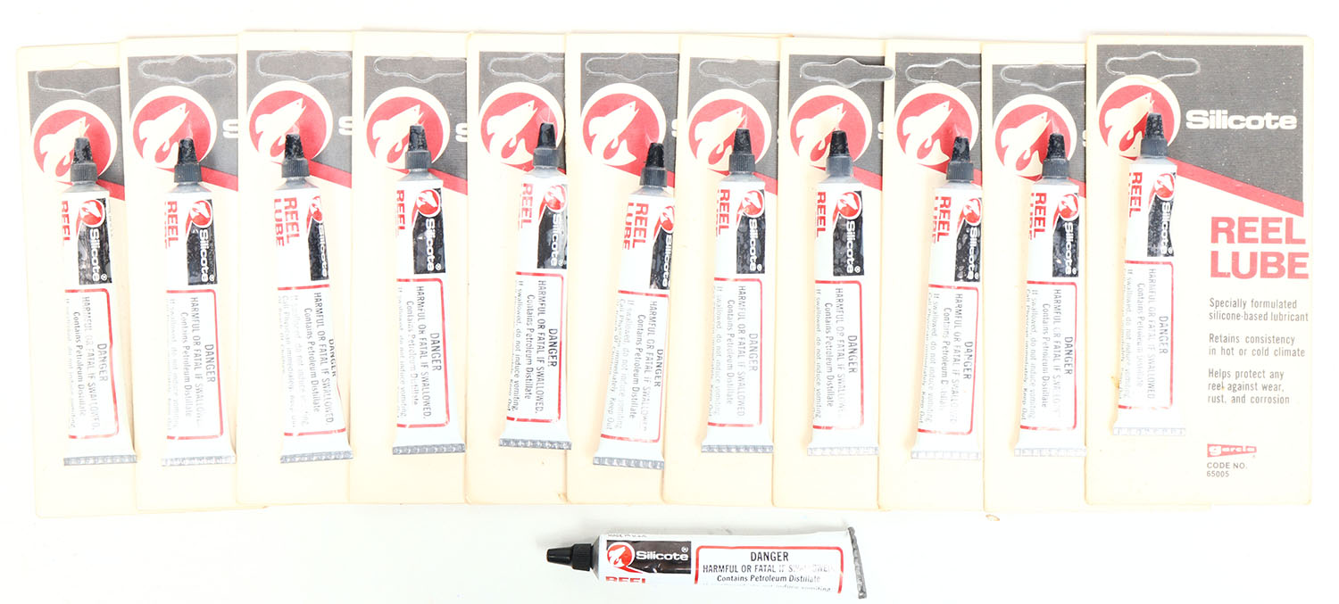 Lot of Silicote reel lube in orignal packaging. Grade: Excellent - Value: 2 to 20