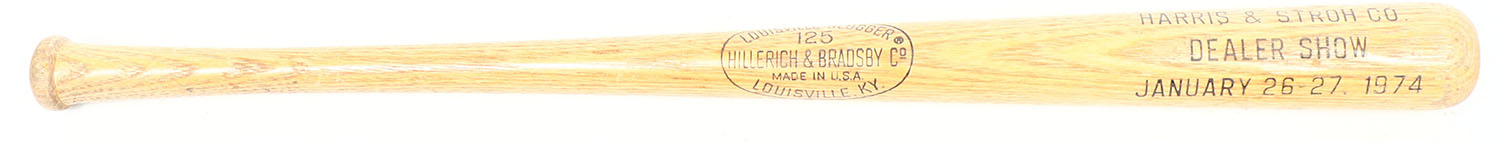 RARE! Louisville slugger salesman sample wood bat, Harris & Stroh Co. Dealer Show Jan. 26/27 1974, 16'' OAL. Grade: Excellent - Value: 6 to 30