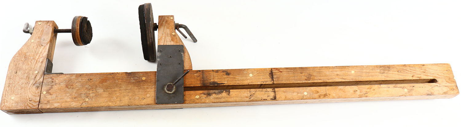 Large wood antique checkering cradle, for working on a gun. 52'' OAL. Grade: Excellent - Value: 10 to 50