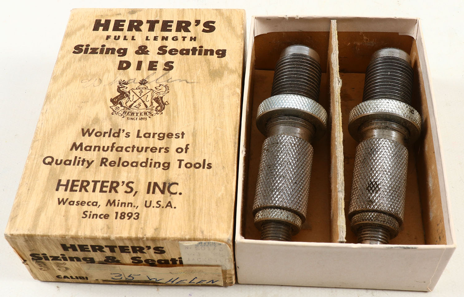 Herters Reloading dies, .35 Whelen., in original box. Grade: Excellent - Value: 6 to 60