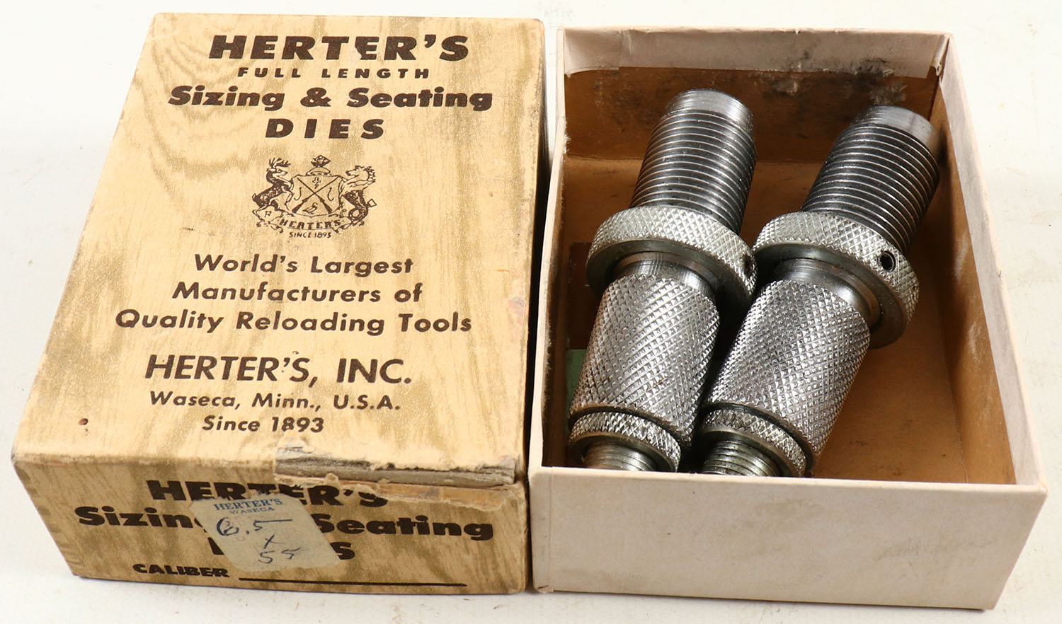 Herters Reloading dies, .6.5x55 cal., in original box. Grade: Excellent - Value: 4 to 40