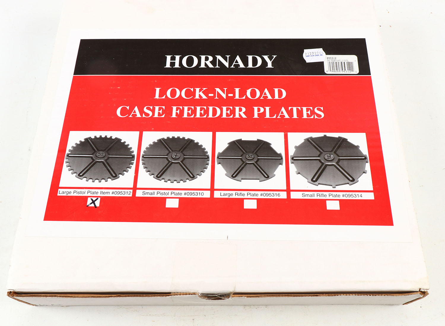 Hornady Lock-N-Load case feeder plate, Large Pistol Plate in box. Grade: Excellent - Value: 6 to 40