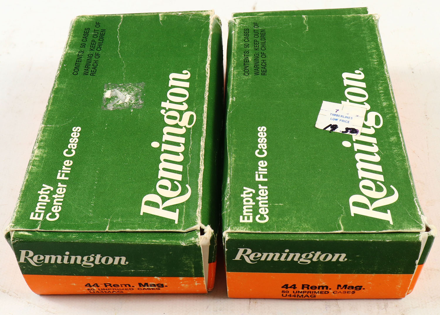 Lot of 2 Remington .44 Rem Mag, Unprimed Cases, boxes & brass are excellent. Grade: Excellent - Value: 20 to 90