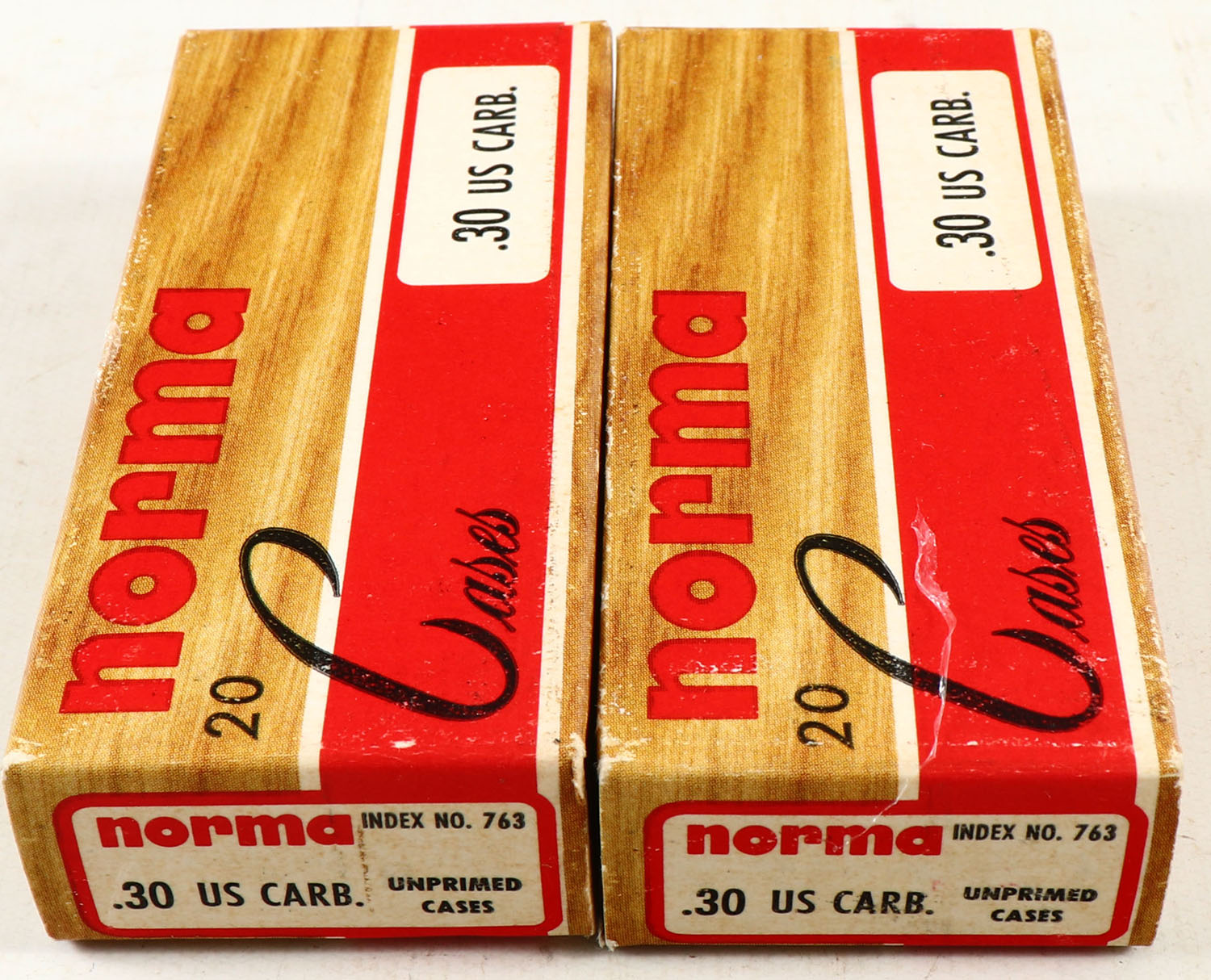 Lot of 2 Norma .30 US Carb., Unprimed Cases, full. Grade: Excellent - Value: 10 to 60