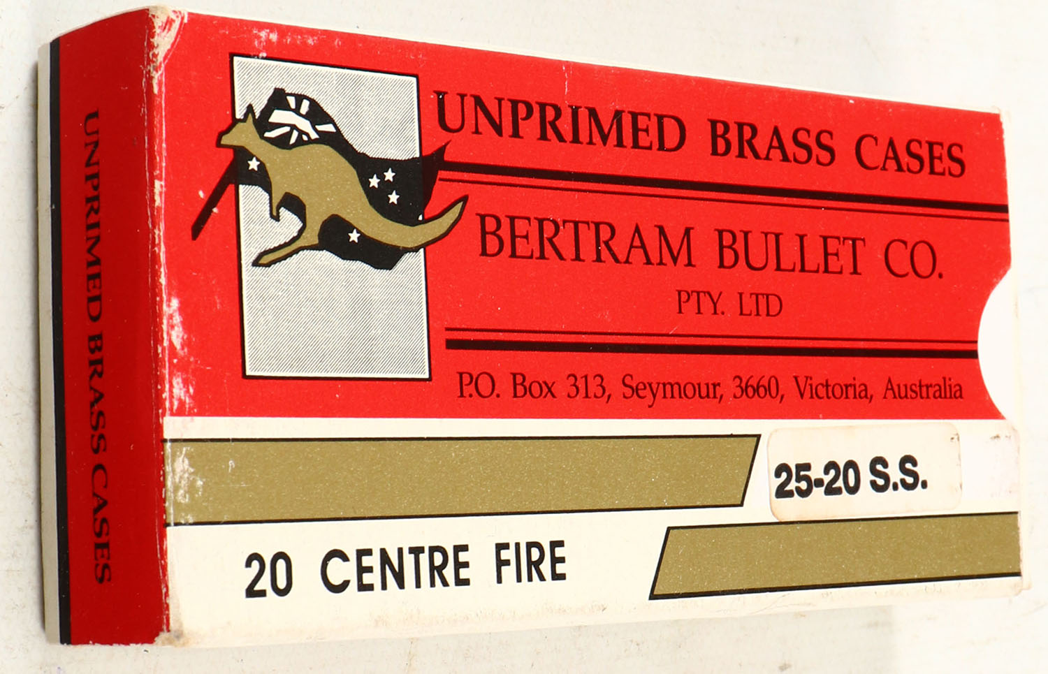 Bertram Bullet Co., Unprimed Bras Cases, 25-20 S.S., 18 of 20 in box. Grade; Excellent - Value: 2 to 30