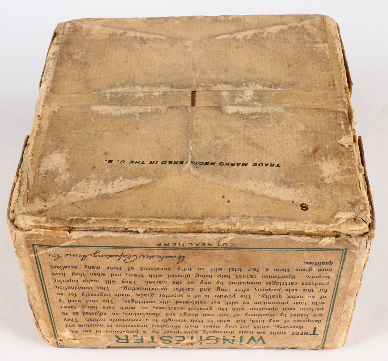 RARE!! Winchester, New Rival, 12ga., 2pc., has Insert, Partial 24rds, Shot Size 6, Buff box with buff & green label, box has tape & glue repairs, edge wear & age soiling, paper shells are very good. Grade: Very Good ++ - Value: 400 to 1500