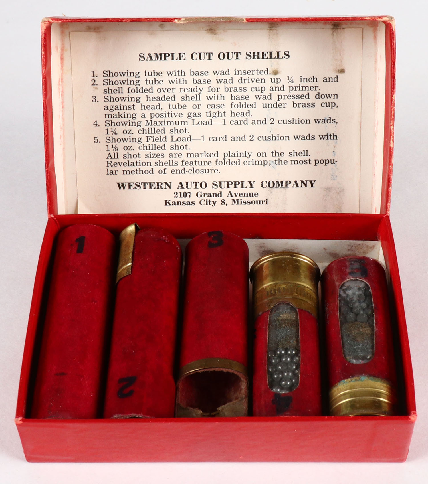 Very Rare Western Auto Supply Salesman Sample Set, Red box is solid with red & black top label that says Sample Shells, shells are excellent, Rare & hard to find. Grade: Excellent - Value: 50 to 200