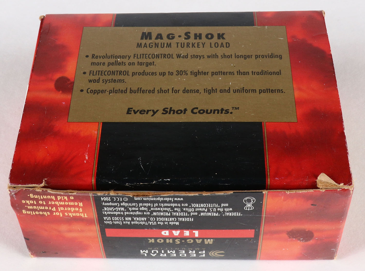 Federal, Mag Shok, 12ga., 1pc., Full, shot size 4, 3 1/2'' Magnum Turkey Load, multi-colored box, box is very solid, shells are excellent. Grade: Excellent - Value: 10 to 30