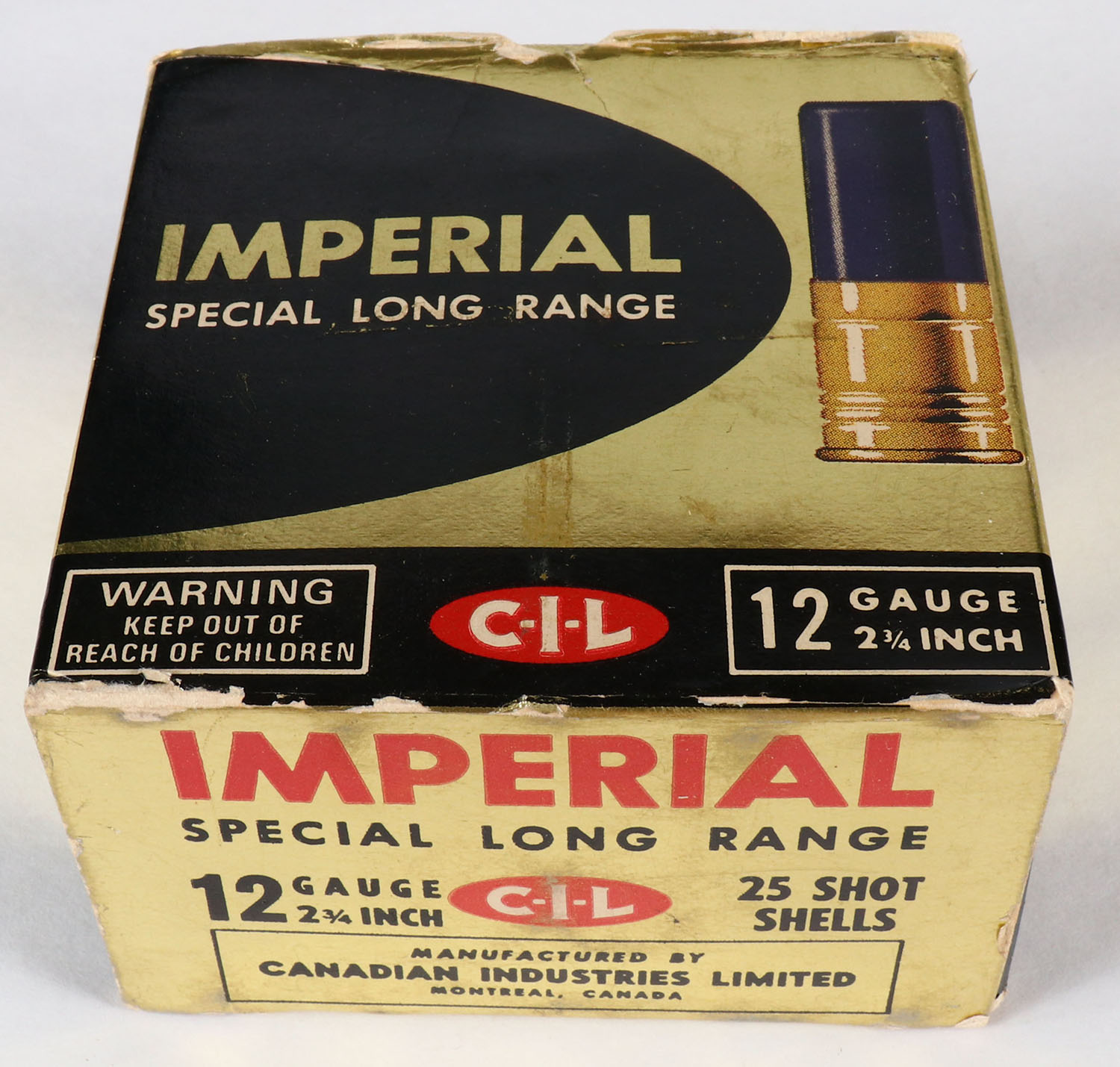 CIL, Imperial, 12ga., 1pc., Full of incorrect brands, shot size 4, multi-colored box, box is solid, shells are good. Grade: Very Good - Value: 6 to 20