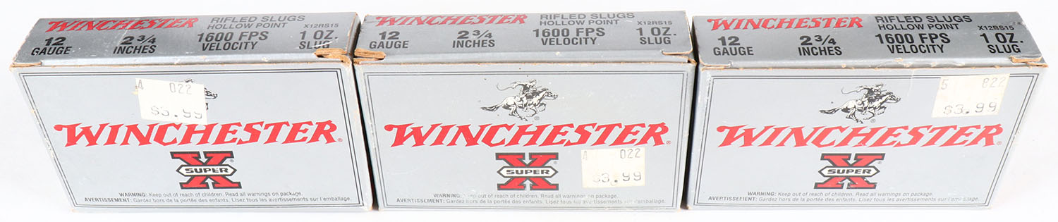 | Lot of 3 Winchester, 12ga., 1pc., Appears Full, shot size 1 oz. ...