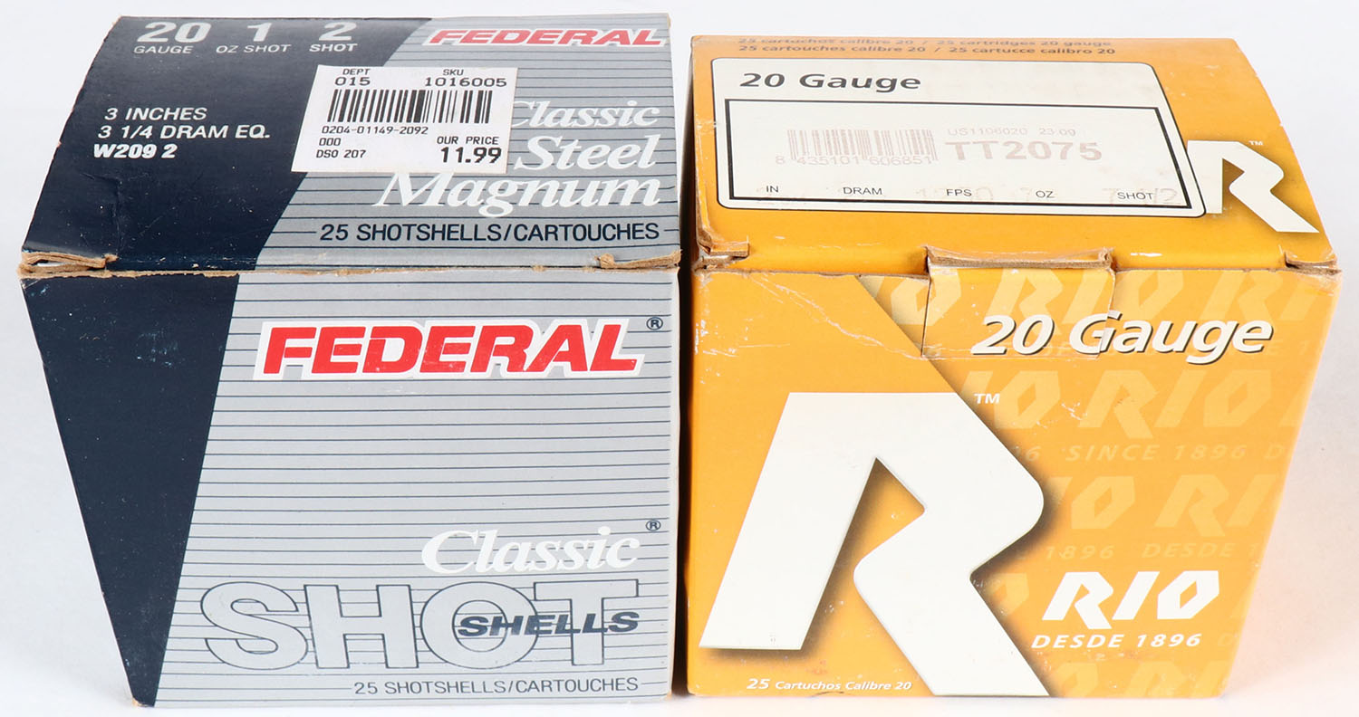 | Lot of 2 Federal & Rio, 20ga., 1pc., Appears Full, shot size 2 ...
