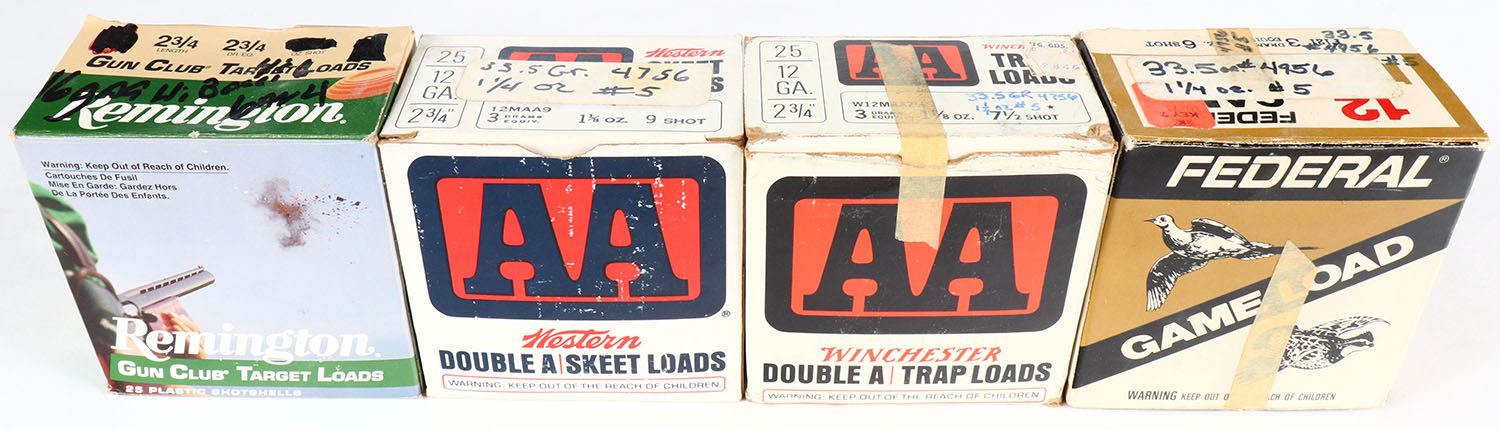 Lot of 4, Mixed Manufacture, 12ga., Appears Full, Shotshell Boxes. Grade: Very Good ++ - Value: 10 to 40