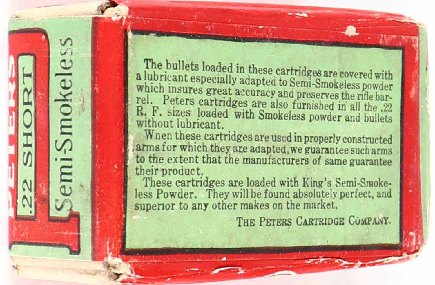 | Peters, R.F. Rifle Cartridges, .22 Short, Semi-Smokeless Powder,...