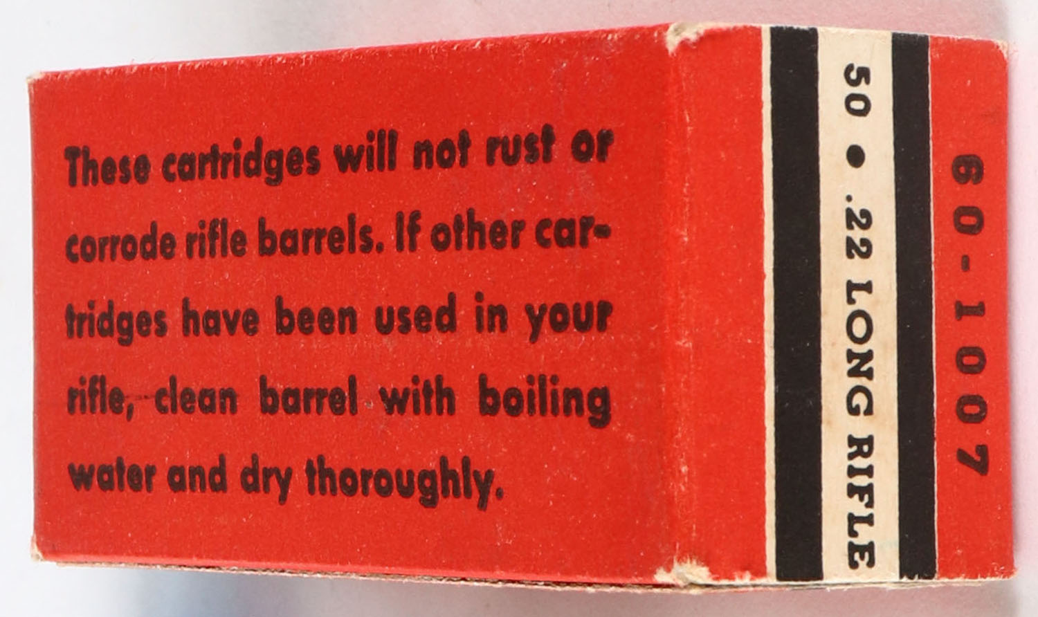 Wards, Cleanfire, .22 Long Rifle, Lead Lubricated, RHWeb: MW-4A LR-1, Full, 1pc. Red white & black box, box is solid with excellent color, very minor corner wear, edges are crisp, end flaps are solid, ammo is excellent. Grade: Excellent + - Value: 10 to 40