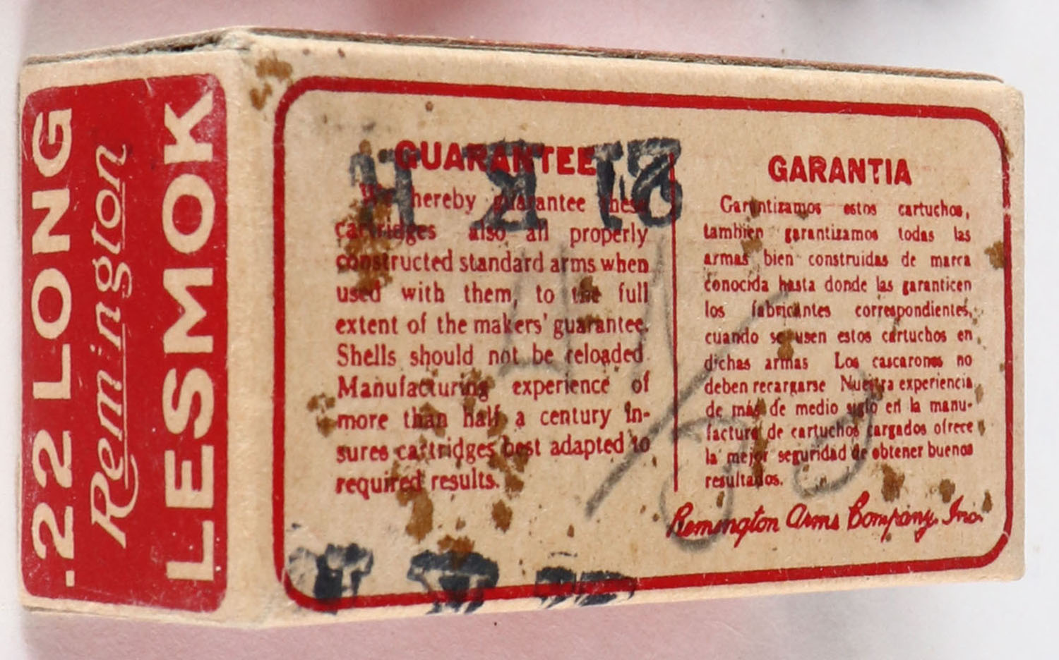 | REM-UMC, R.F. Lesmok Cartridges, .22 Long, RHWeb: REM-6 L-2A, Fu...