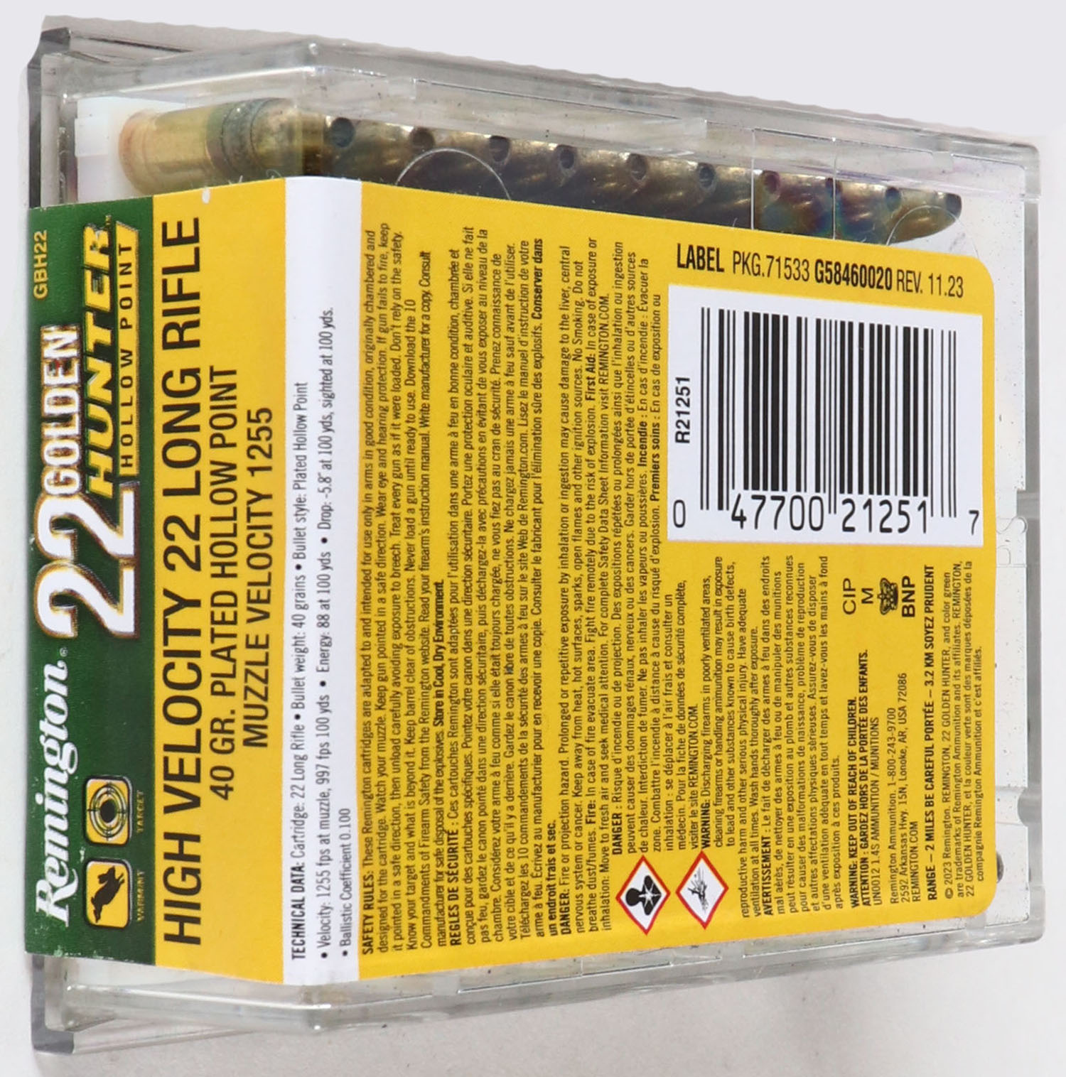 | Remington, Golden Hunter, .22 Long Rifle Hollow Point, 40 Grain ...