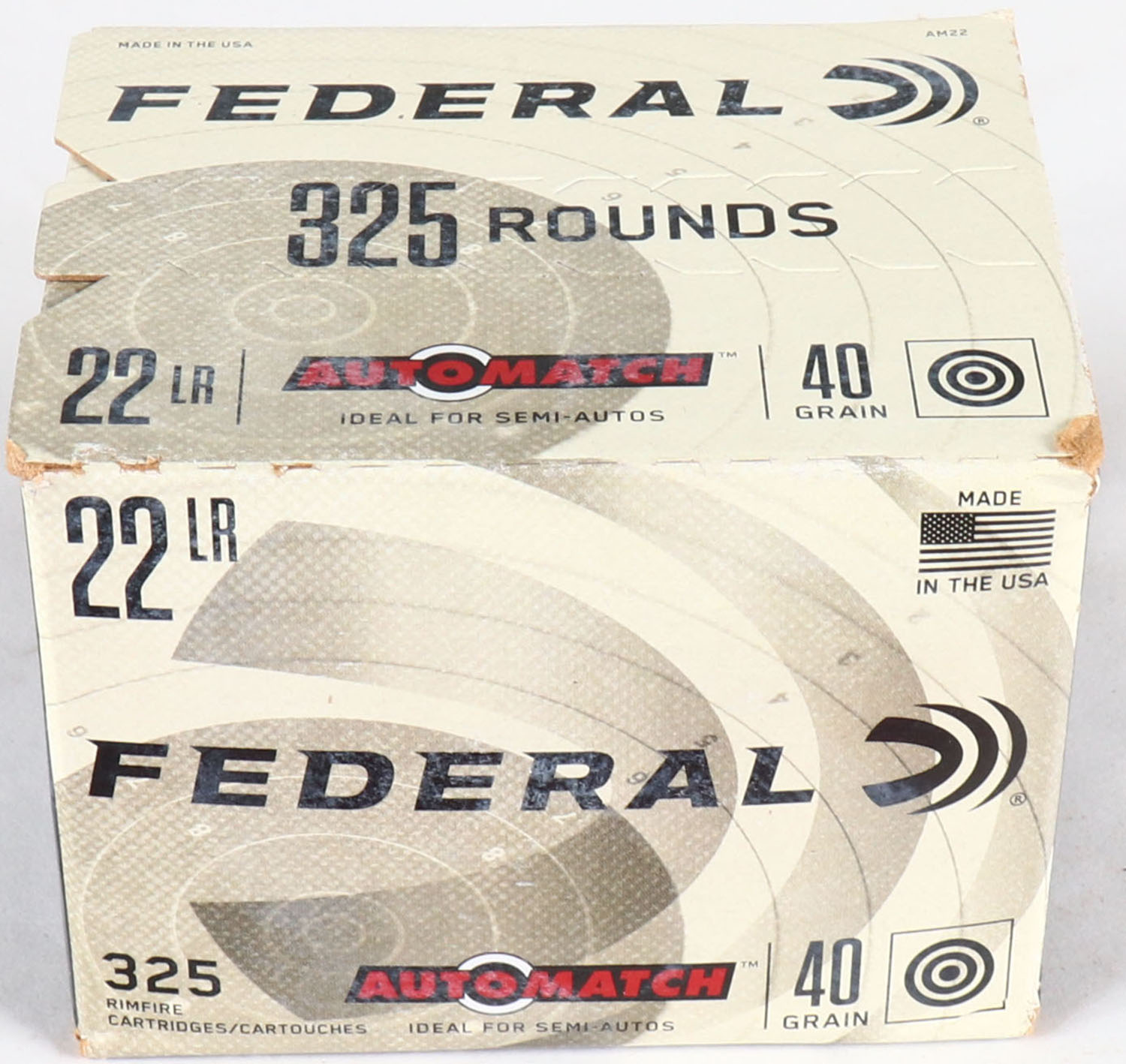 Federal, AutoMatch, .22 Long Rifle, Ideal for Semi-Autos, 40 Grain Solid, 1200 FPS, FULL & SEALED 325 rds. 1pc. Tan & black bulk box, box is solid with minty color, very minor corner wear, edges are crisp. Grade: Excellent ++ - Value: 10 to 50