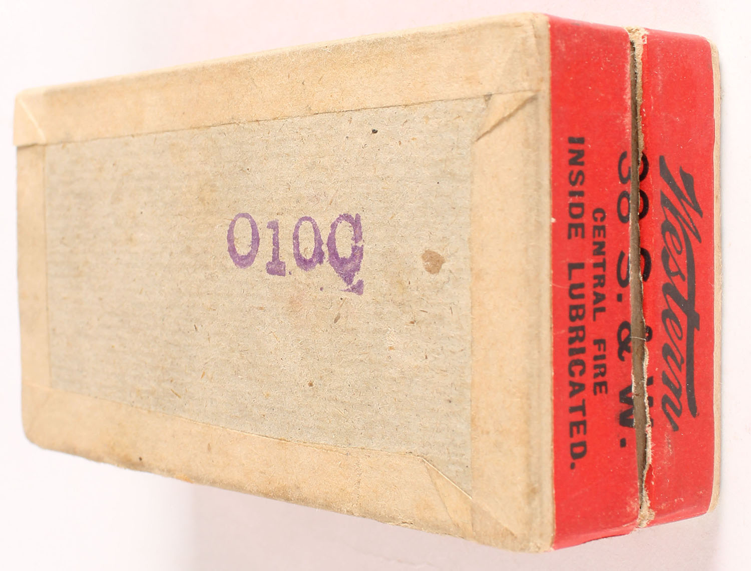 Western, Central Fire Cartridges, .38 Smith & Wesson, Nublend Powder, 145 Gr. Bullet, Full, 2pc. Buff box with green top & red side sealing labels, box is solid with excellent color, corners are mostly sharp, edges are mostly crisp, labels are intact, ammo is excellent. Grade: Excellent ++ - Value: 60 to 180