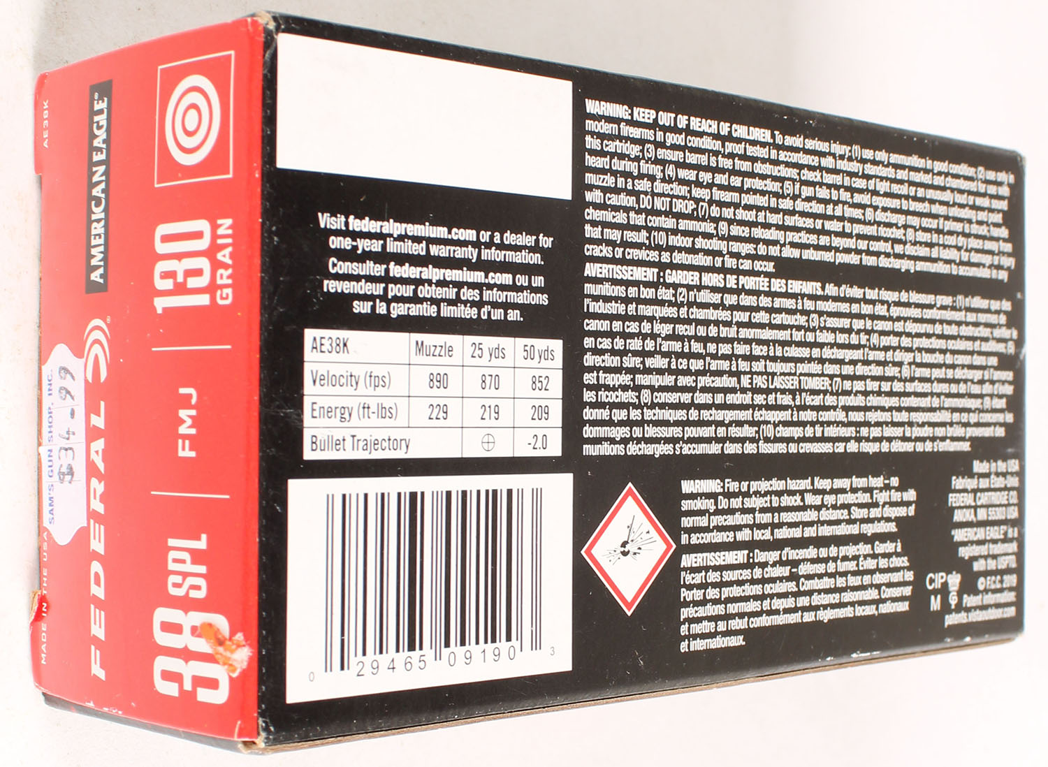 American Eagle, 40 S&W, 180 Grain FMJ, FULL & SEALED, 1pc. Multi-colored box, box is solid with great color, light edge & corner wear, end flaps are solid. Grade: Excellent - Value: 10 to 50