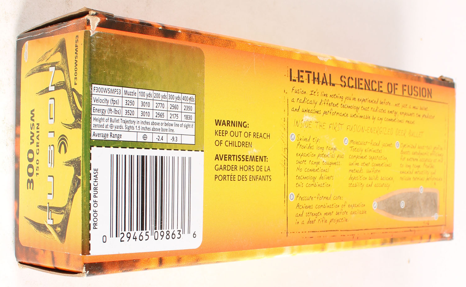 Federal, Fusion, 300 WSM, 150 Grain, Full, 1pc., multi-colored box, box is solid with great color, end flaps are solid, ammo is excellent. Grade: Excellent - Value: 20 to 80