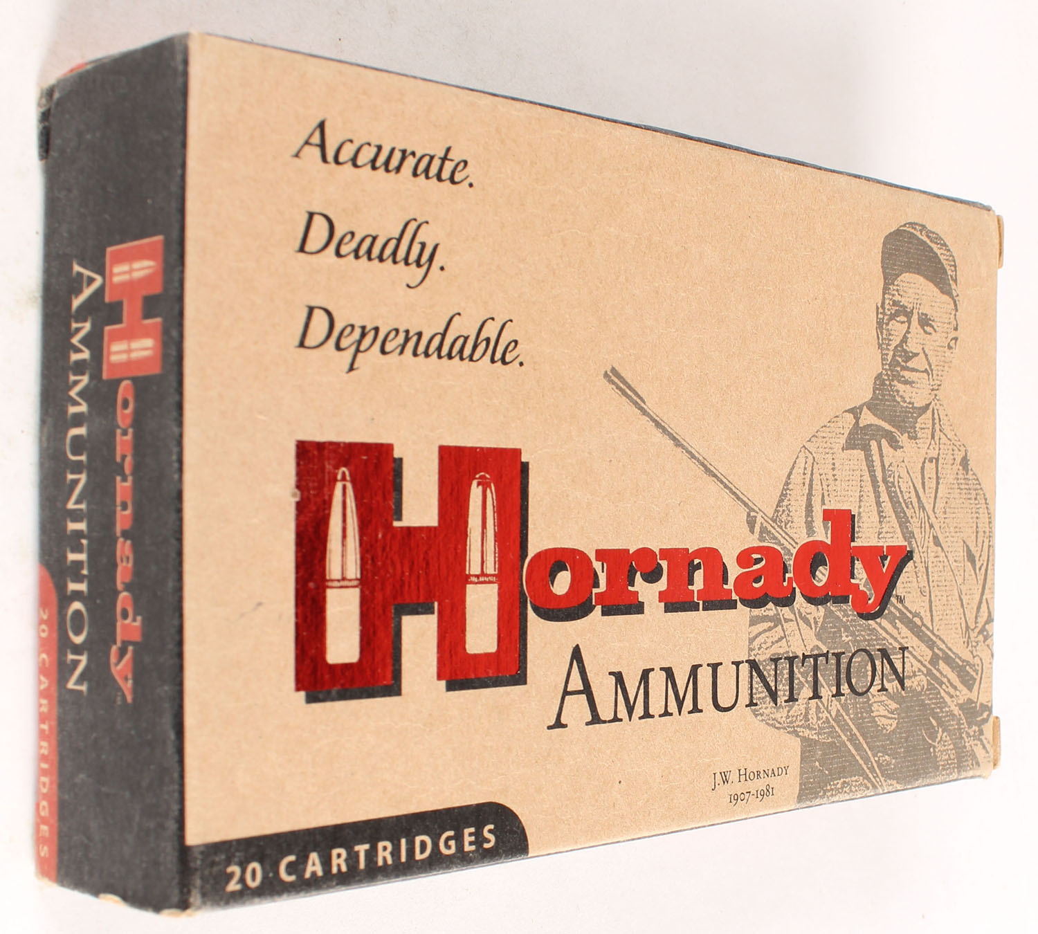 Hornady, Custom, .338 Lapua, 250 Grain SP-RP interlock, Full, 1pc. multi-colored box, box is solid with excellent color, Ammo is excellent. Grade: Excellent + - Value: 30 to 90