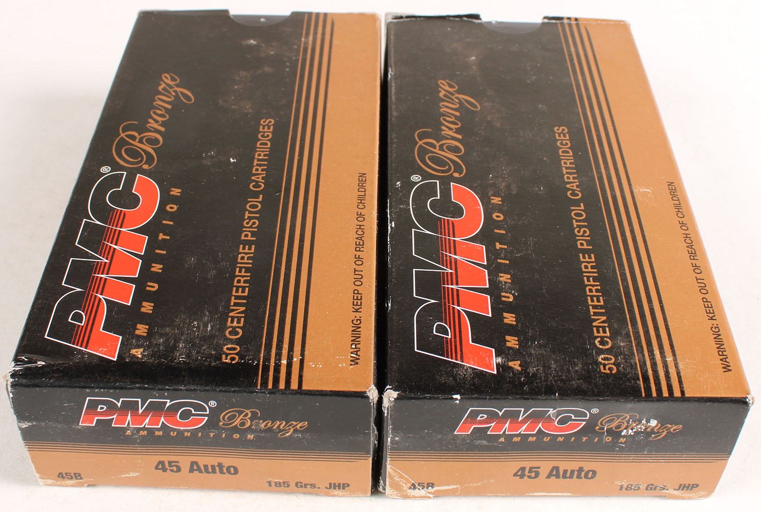 PMC Bronze, Lot of 2, .45 Auto, 185 Gr. JHP, 1pc, Full, boxes are solid, ammo is excellent. Grade: Excellent - Value: 20 to 60