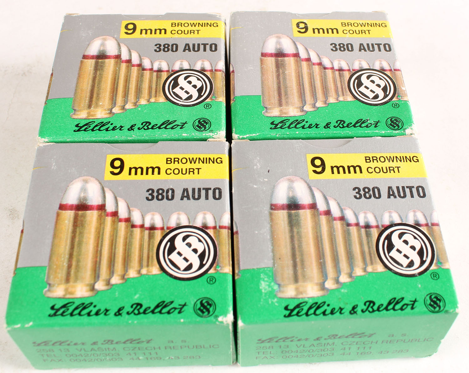 | Lot of 4 Sellier & Bellot, 9mm Court (.380 Auto), 92 Grain bull...