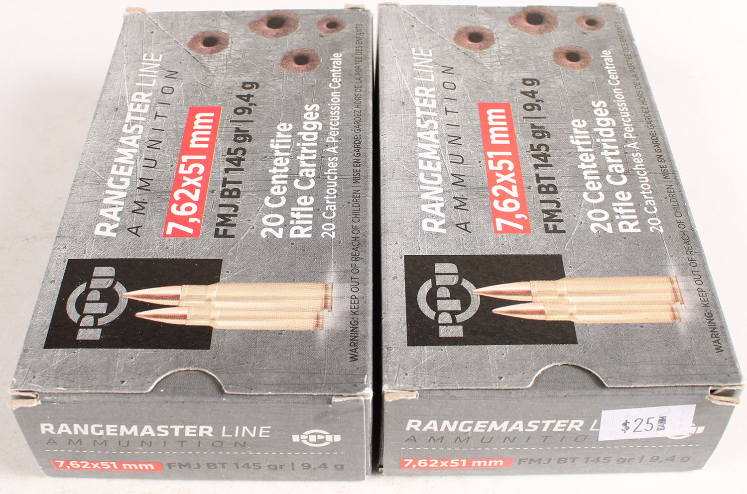 Lot of 2 PPU, RangeMaster Line, 7.62 x 51 mm, 145 Gr., FMJ, Full, boxes are MINT, ammo is mint. Grade: MINT - Value: 20 to 60