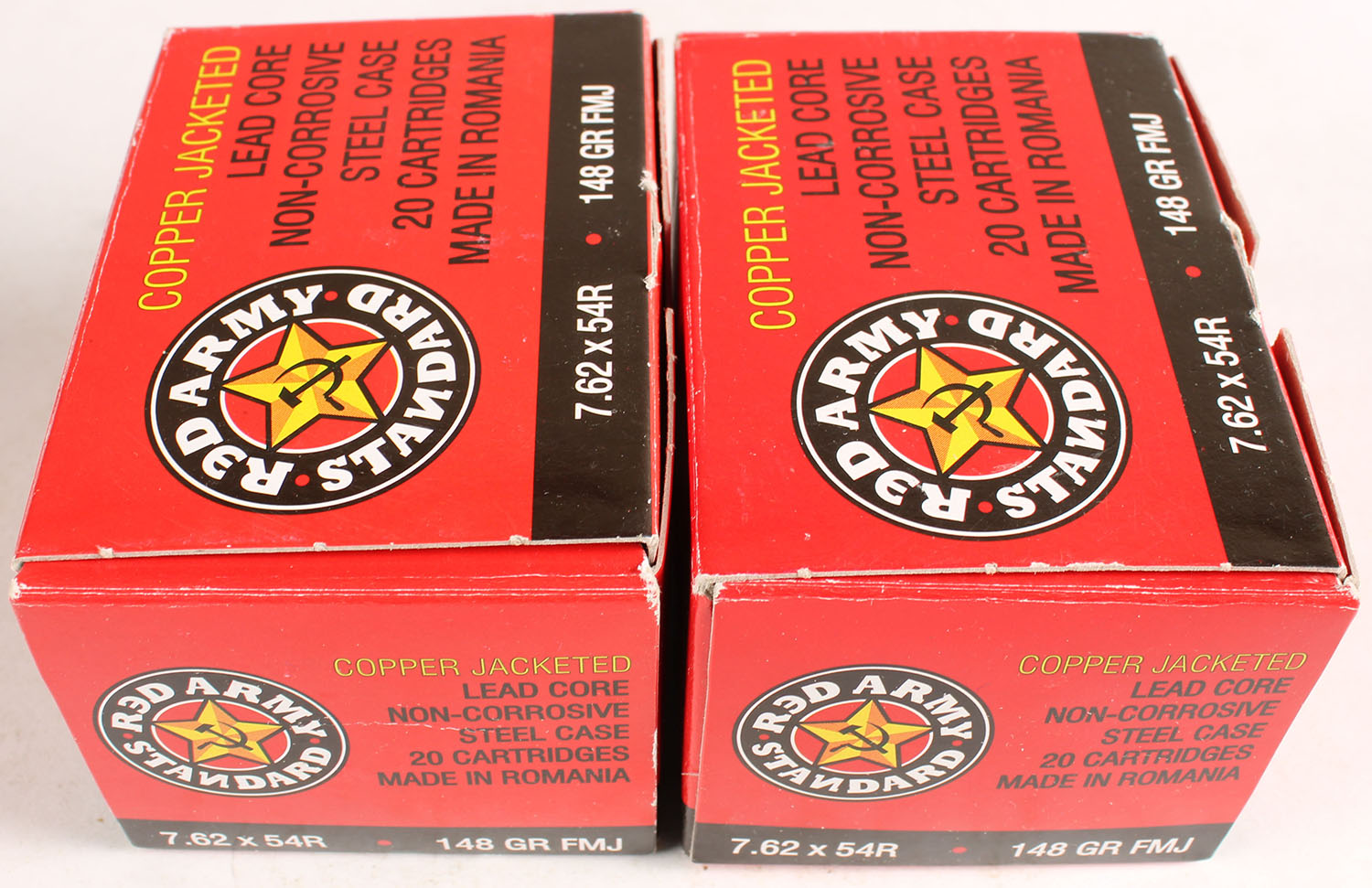 Lot of 2 Red Army Standard, 7.62 x 54R, 148 Gr. FMJ, Full, 1pc, Multi-colored boxes, boxes are very solid, ammo is minty. Grade: Excellent ++ - Value: 20 to 60