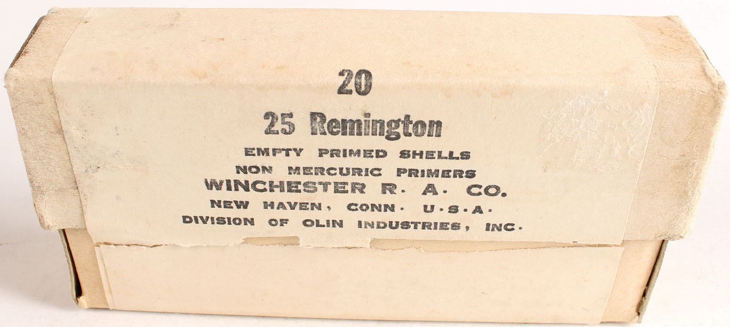 | Remington, Empty Primed Shells, .25 Rem, 2pc., Full, buff box wi...