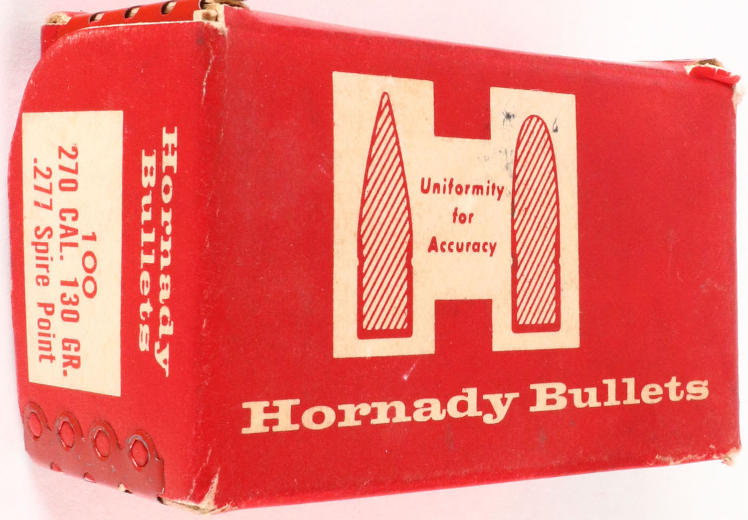 Hornady, .270 Cal., 130 Grain 277 Spire Point, Full, 1pc. Red & white box, box is solid with excellent to minty color, bullets are minty. Grade: Excellent - Value: 10 to 40