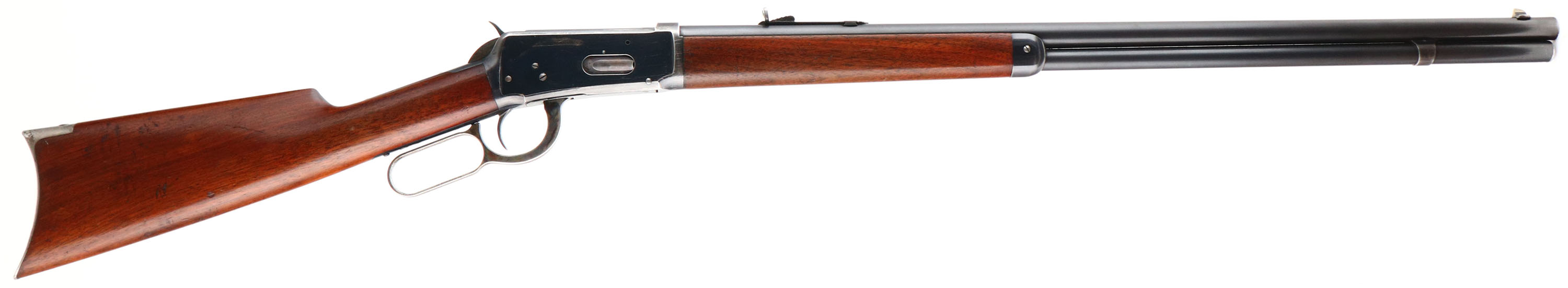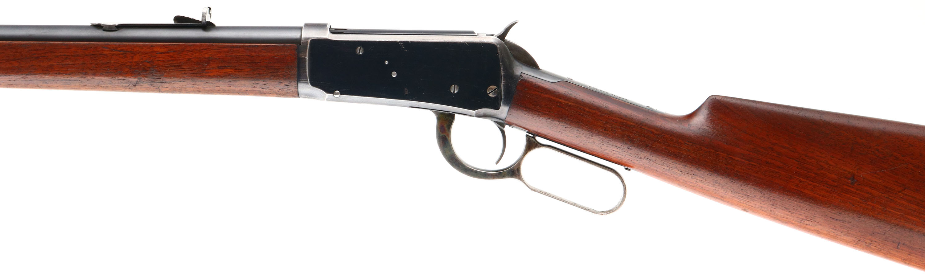 FANTASTIC Winchester, Model 1894, marked 38-55, MFG: 1898 (Antique), SN: 49267, Lever Action Rifle, 26'' Round Barrel, Full mag. The original wood stocks are excellent, with several minor scuffs, scratches or contusions to the original finish. Some thinning of the finish at the carry points of wrist & belly of forend. The original factory metal blue finish is 95% on barrel & mag, 85% blue on the receiver. The case-hardened lever & hammer display strong remains of case-colors. Bore is excellent. Barrel fitted with factory adjustable rear & pinch blade front sights. Metal crescent buttplate, with faded outlines of case-colors. Tight smooth action. An overall excellent & all original condition antique rifle, which has strong collectability. Antique, No FFL Req. - Value: 5000 to 7500