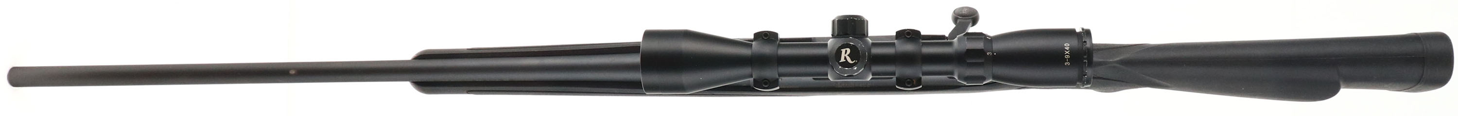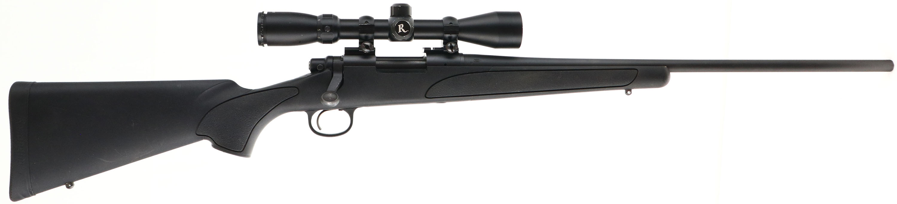 Remington, Model 700, CAL: 243 WIN, MFG: Modern, SN: G7091003, Bolt Action Rifle, 24'' round barrel. The original cheeked & flat pistol grip synthetic stock is excellent, with textured grip insets at the pistol grip & forend. The factory metal finish rates 99% overall. Bore is excellent. The receiver holds a Remington 3-9x40 scope, while the barrel has no sight provisions for front & rear sights. Stock carries the factory Remington solid recoil pad. Sling studs. FFL Req. - Value: 500 to 800
