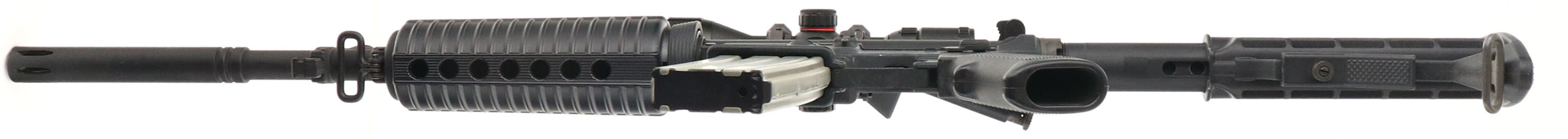 Stag Arms, STAG-15, CAL: 5.56, MFG: Modern, SN: 91407, Semi Auto Pistol, 16 1/2'' barrel. The synthetic checkered grip & Stag 6pt adjustable stock are excellent. The matte black finish rates 95%, with some spotting on the left side of the lower. Bore is excellent. Factory iron sights. The receiver picatinny rail carries a UTG 3-9x32AO Mil-Dot scope. Sling loops. 30rnd steel mag. FFL Req. - Value: 400 to 800