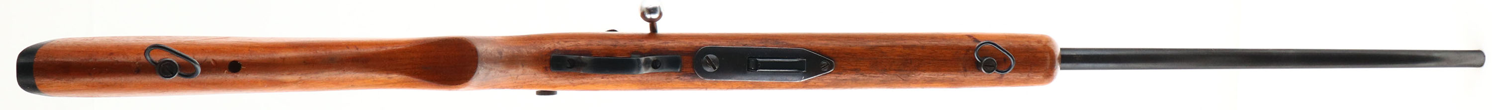 Marlin, Model 80-DL, 22 S. L. LR, MFG: 1941-64 SN: NONE, Bolt Action Mag Fed Rifle, 24'' round barrel. The original flat pistol grip stock is very good, displaying several minor surface scrapes, scratches or contusions to the original thinning & flaking finish. Some areas of minor moisture damage on the stock to the finish. The original metal blue finish is 80% overall, with some spotting & cleaned rust speckling. Bore is very good. Fitted with an adjusting side mount receiver sight, blank filled rear dovetail & hooded ramp front sight. The stock carries the original buttplate, with a small edge chip at the top. Original detachable mag. Open shallow hole on belly of stock from missing Marlin trademark bullseye. Sling swivels. FFL or C&R - Value: 150 to 300
