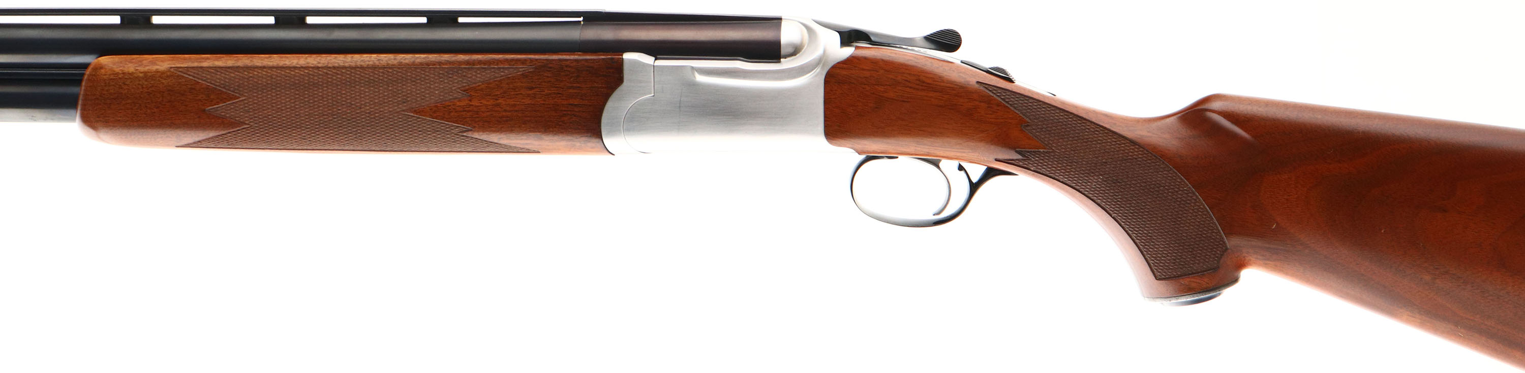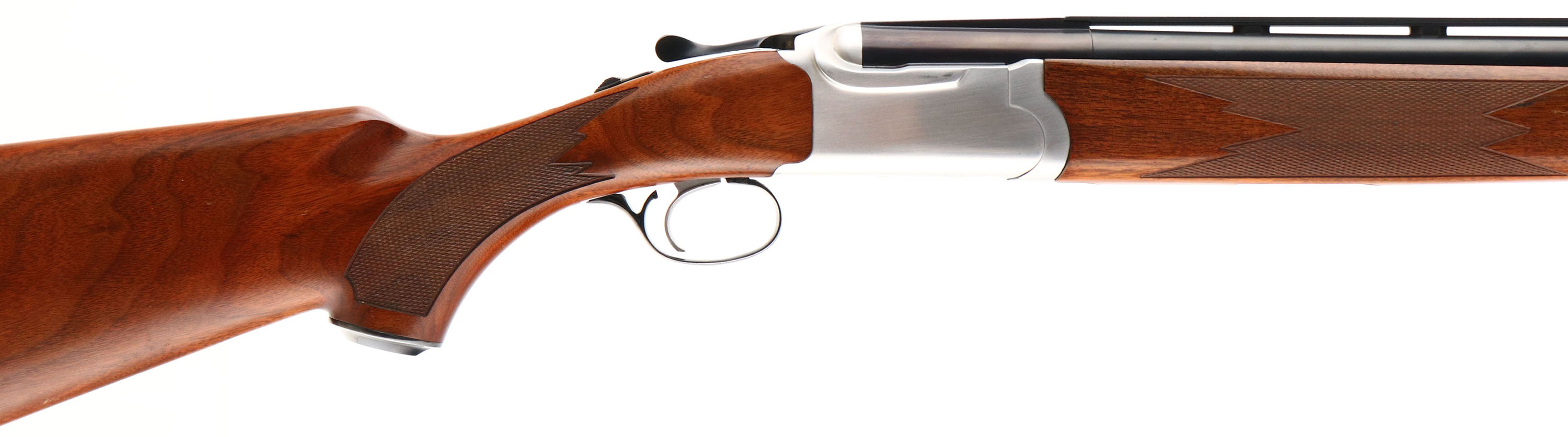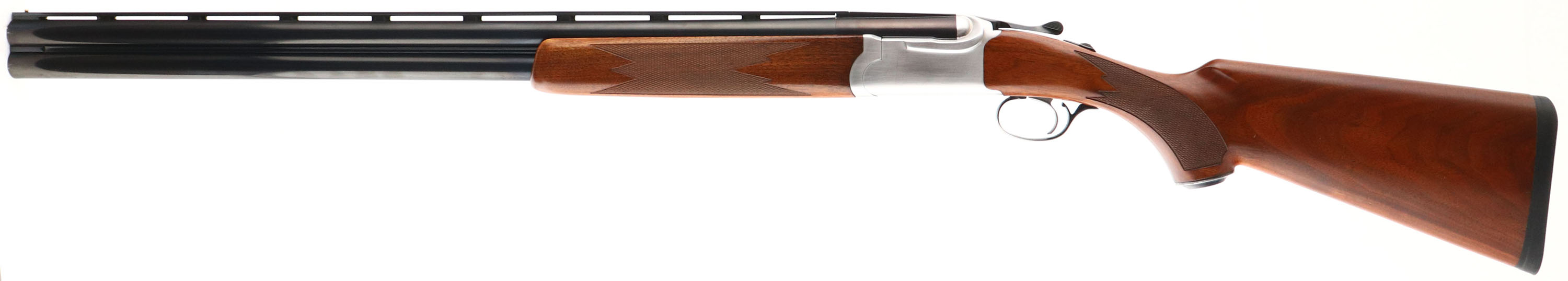Ruger, Red Label, CAL: 12GA, MFG: 2002, SN: 411-57269, Break Action O/U, Choke: IC+/IC+. 3'' Chamber, 28'' barrels, with ventilated rib. The original checkered & capped pistol grip stocks are excellent, with sharp checkering. There are minor handling marks to the finish. The original metal blue finish rates 97%. The chamber end of the top barrel is beginning to tone plum. The coin silver receiver is excellent, with visible brush lines. Bores are excellent. The ventilated rib holds a single front bead. Stock carries a factory Ruger solid black rubber recoil pad. A nice condition Red Label. FFL Req. - Value: 1000 to 1600