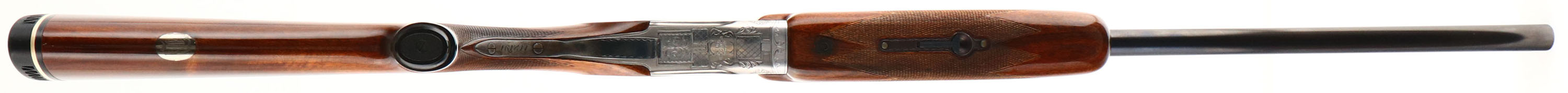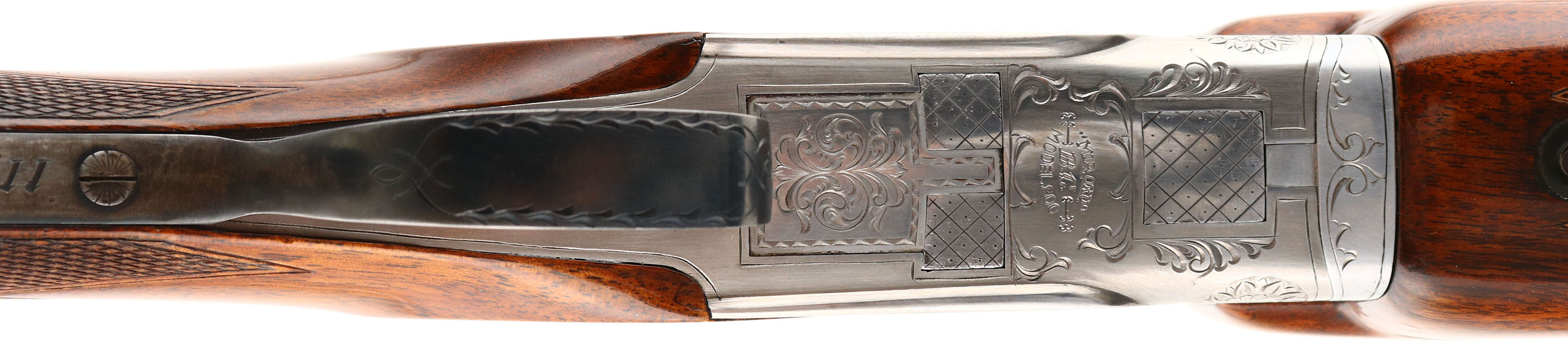 CASED, Miroku, Model 800- Skeet Gun, CAL: 12GA, MFG: Mid 1960's-74, SN: 112191, Break Action O/U, Choke: IC/IC, 26'' barrel with ventilated rib. The original checkered & capped pistol grip stocks are excellent. The high gloss finish is excellent. There is an engraved initial plate in the belly of the stock, marked ''B''. The metal blue finish on the barrels rates 97% & the engraved coin silver receiver is excellent. The hand engraved receiver displays decorative floral scroll work & accent engravings on the break lever, trigger guard & forend release lever. Bores are excellent, with visible striations. The ventilated rib holds a small mid-rib bead & front bead. Stock carries a Pachmayr ventilated black rubber recoil pad. Comes with a Browning Hartmann case. Case condition is very good, with light age soiling both inside & out. LOP: 14 1/2''.* FFL or C&R Req. - Value: 800 to 1200