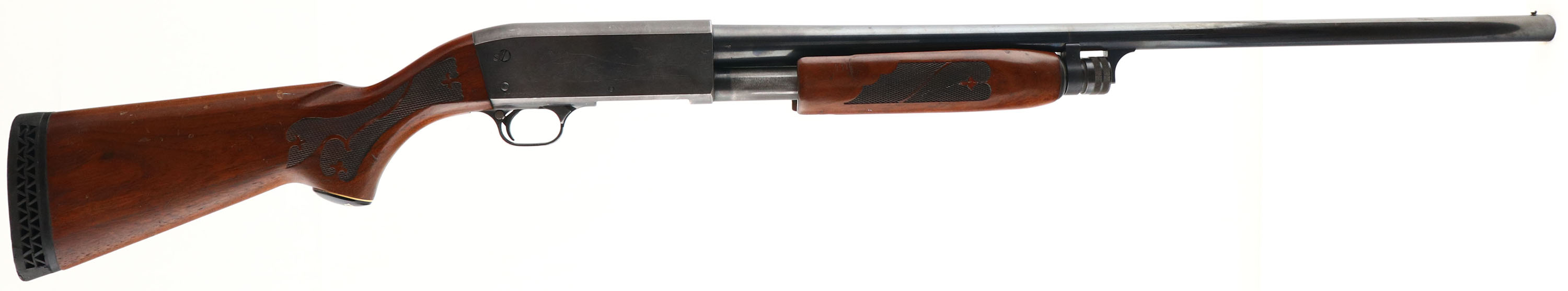 Ithaca, Model 37 Featherlight, CAL: 12 GA, MFG: 1973, SN: 371307547, Pump Action Shotgun, Choke: CYL, 2 3/4'' chamber, 26'' barrel. The original checkered & capped pistol grip wood stocks are very good, displaying several small scuffs, scrapes & contusions to the original thinning finish. The metal blue finish rates 85% overall. All stampings, markings & engravings are crisp & clear. Bore is excellent. The barrel holds a single white front sight. Buttstock carries a ventilated recoil pad. 13 5/16'' LOP over pad. FFL or C&R Req. - Value: 300 to 600